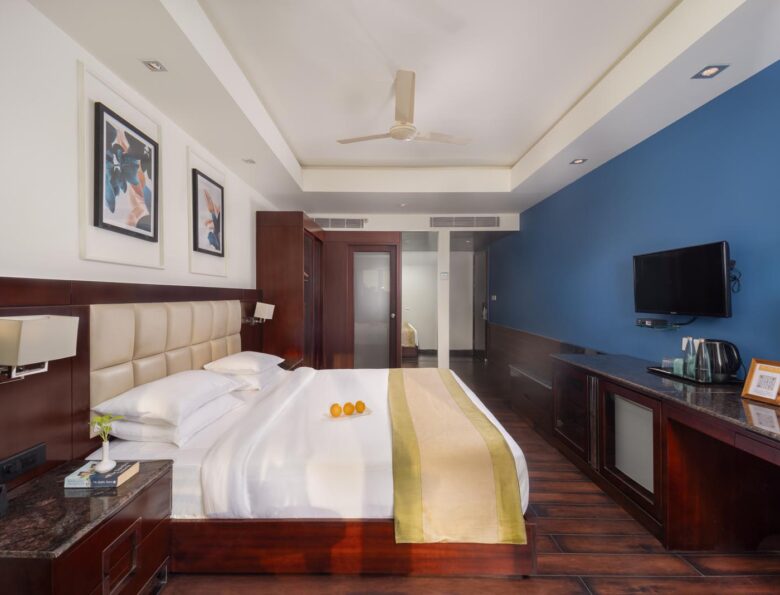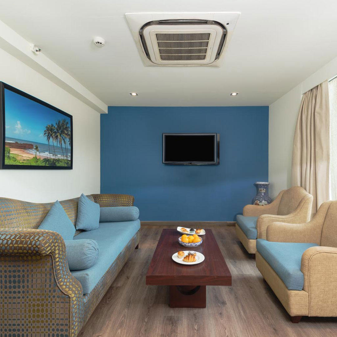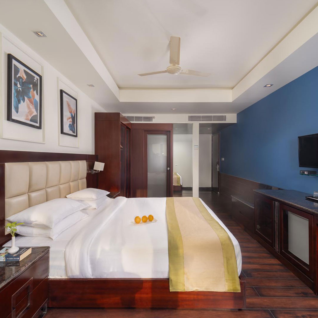 Extremely spacious and snug with a king-sized bed, a separate work area, 32-inch LCD TV, Wi-Fi, hair dryer, safe, iron, tea/coffee maker, the superior room opens its doors to a balcony for you to sit in, lay back and enjoy a cold beer in the evening or savour a cup of tea early in the morning right as you may fancy!